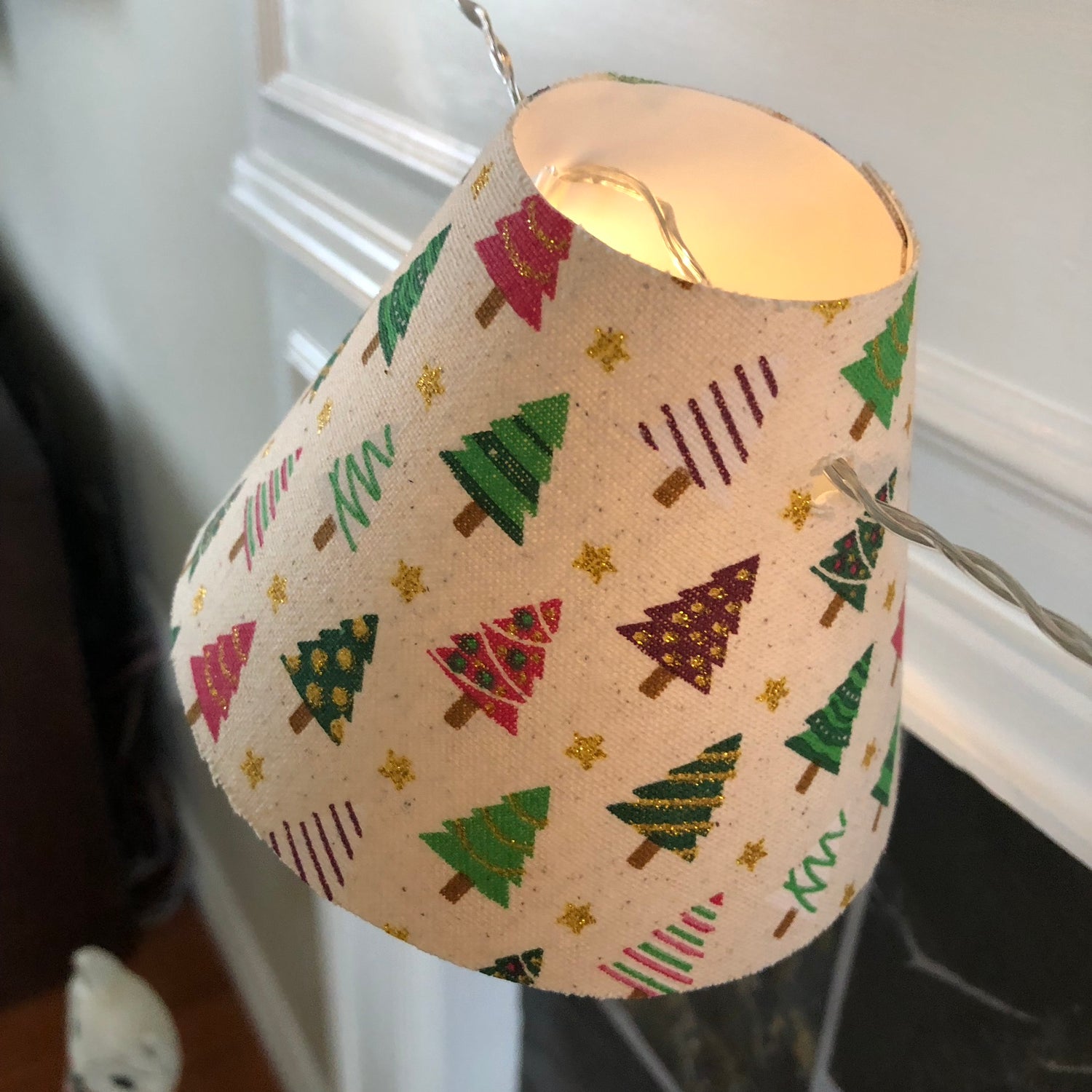 Mini Lampshades made into a string of lights for a whimsical touch...