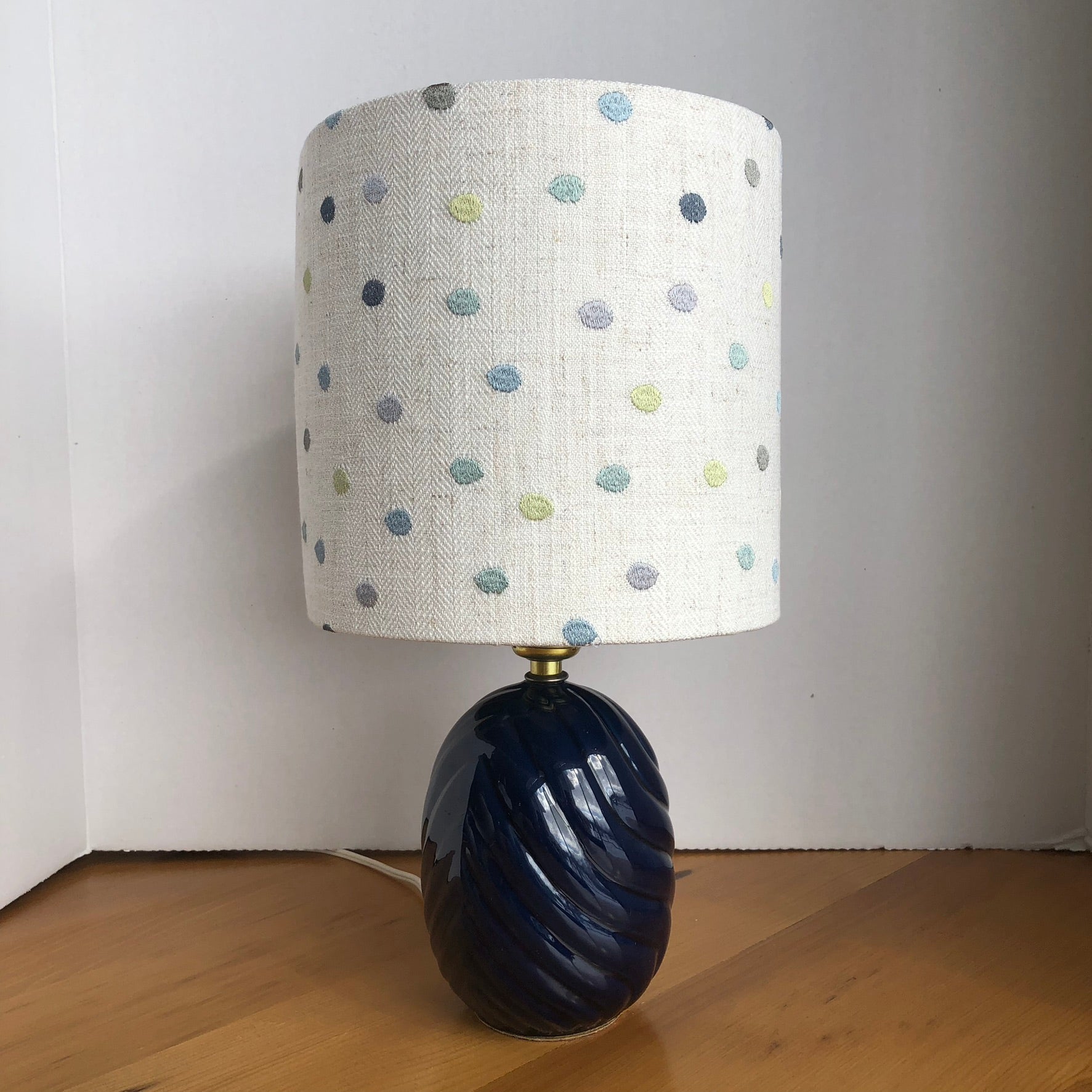 Blue Polka Dot Linen Fabric Lampshade