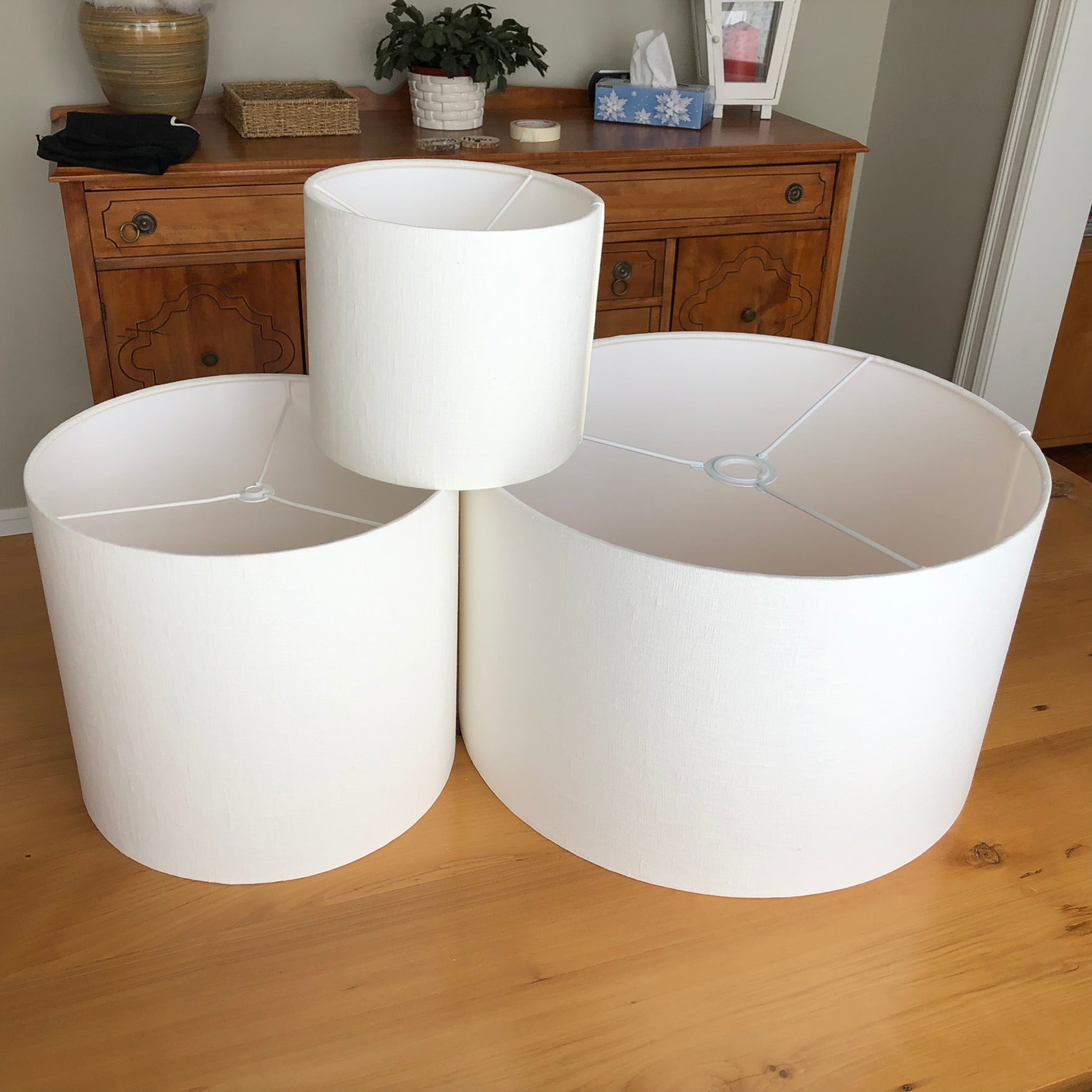 Available in 40 cm, 30 cm and 20 cm diameter sizes. 40 cm is typically used as a pendant light above a table or in a hall. 30 cm works well on a large lamp base. 20 cm fits a small lamp base and also looks great as a grouping of pendant lights.